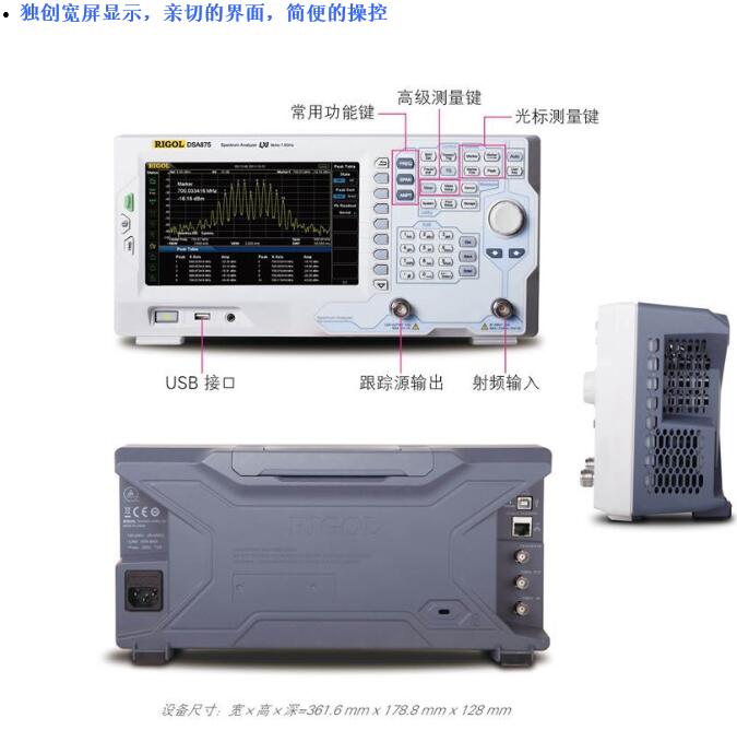 DSA875频谱分析仪性能指标优秀、体积小、重量轻,具有高性价比,频率范围为9kHz至7.5GHz,并提供带有跟踪源的“-TG”型号。DSA875采用全数字中频技术,保证其具备卓越的指标和稳定的性能。独创宽屏的设计,外观新颖,操作简便,是射频研发、设计验证、生产制造和教育培训的理想选择。